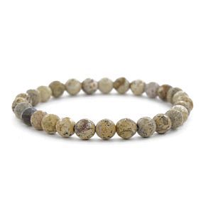 Изящный браслет из граненых шариков натуральной древесной яшмы. Бусинки нанизаны на прочную резинку, что позволяет с комфортом надевать и снимать украшение. Диаметр шарика 6мм. Длина 18см.